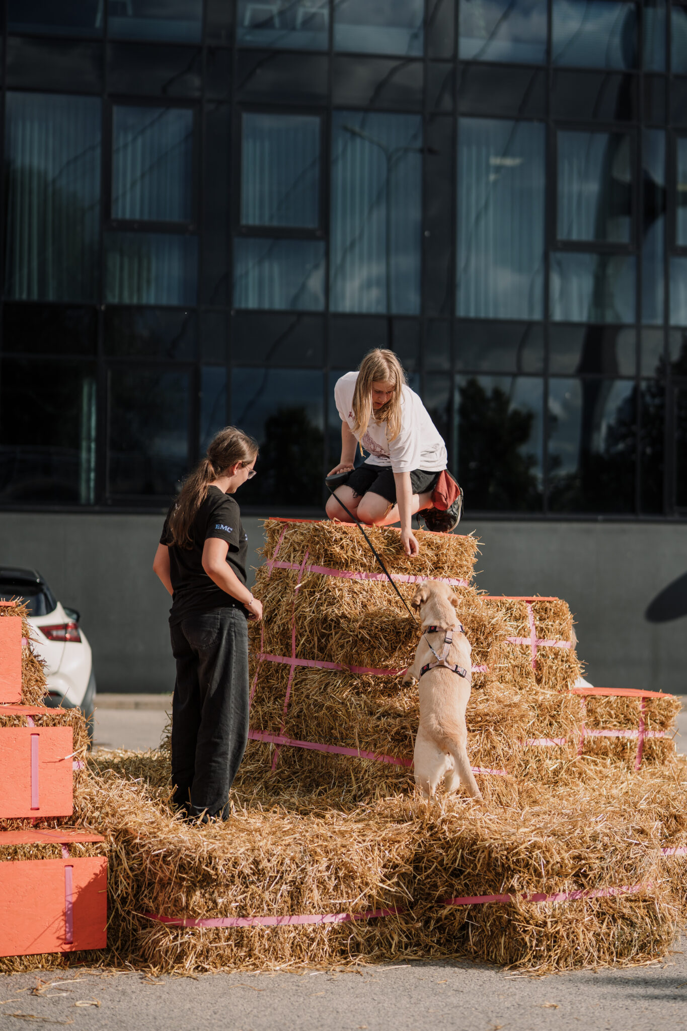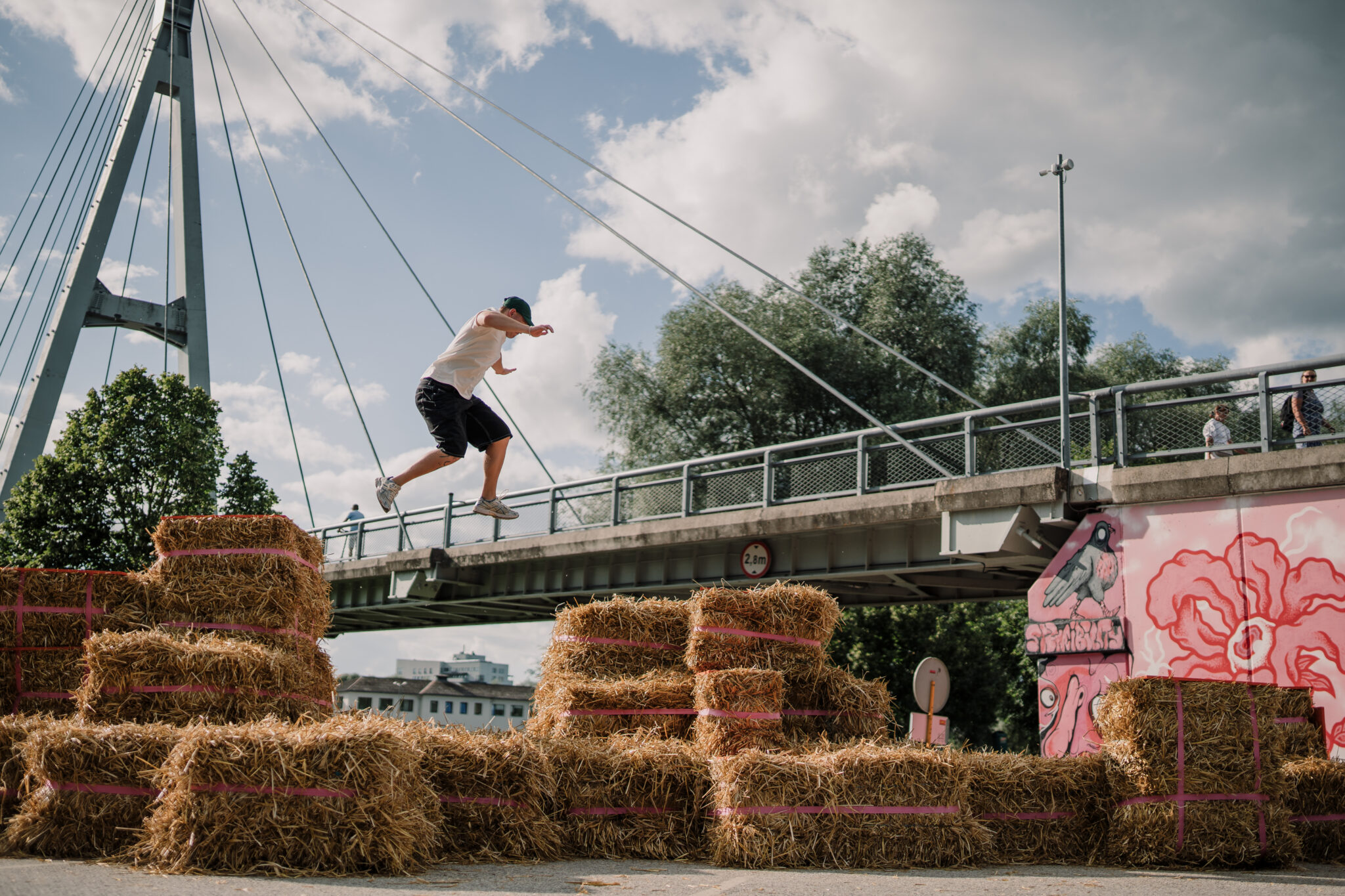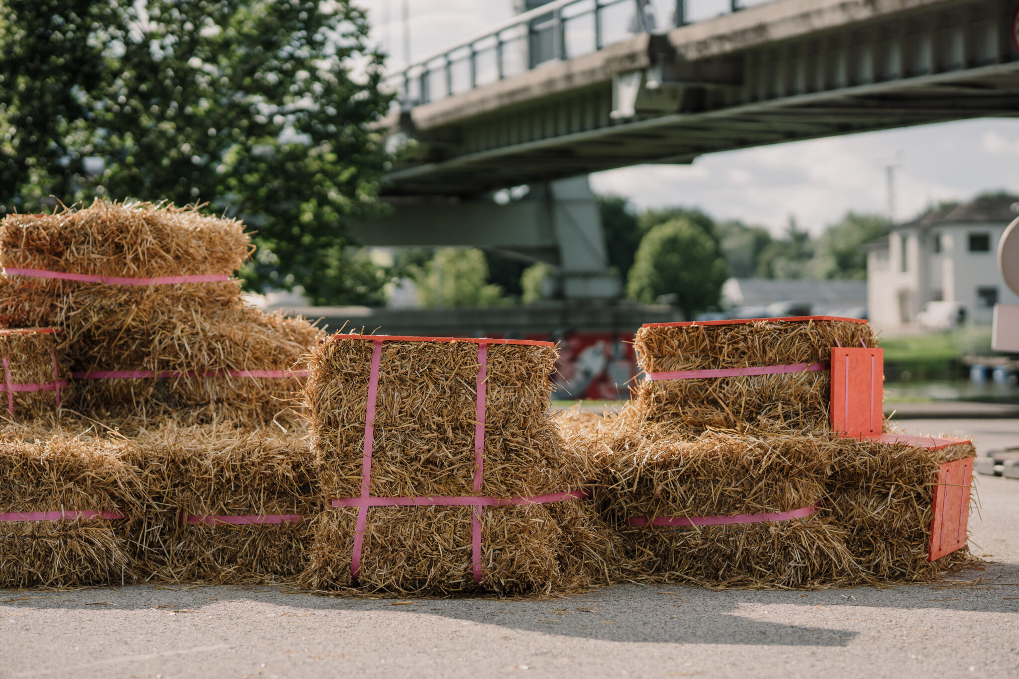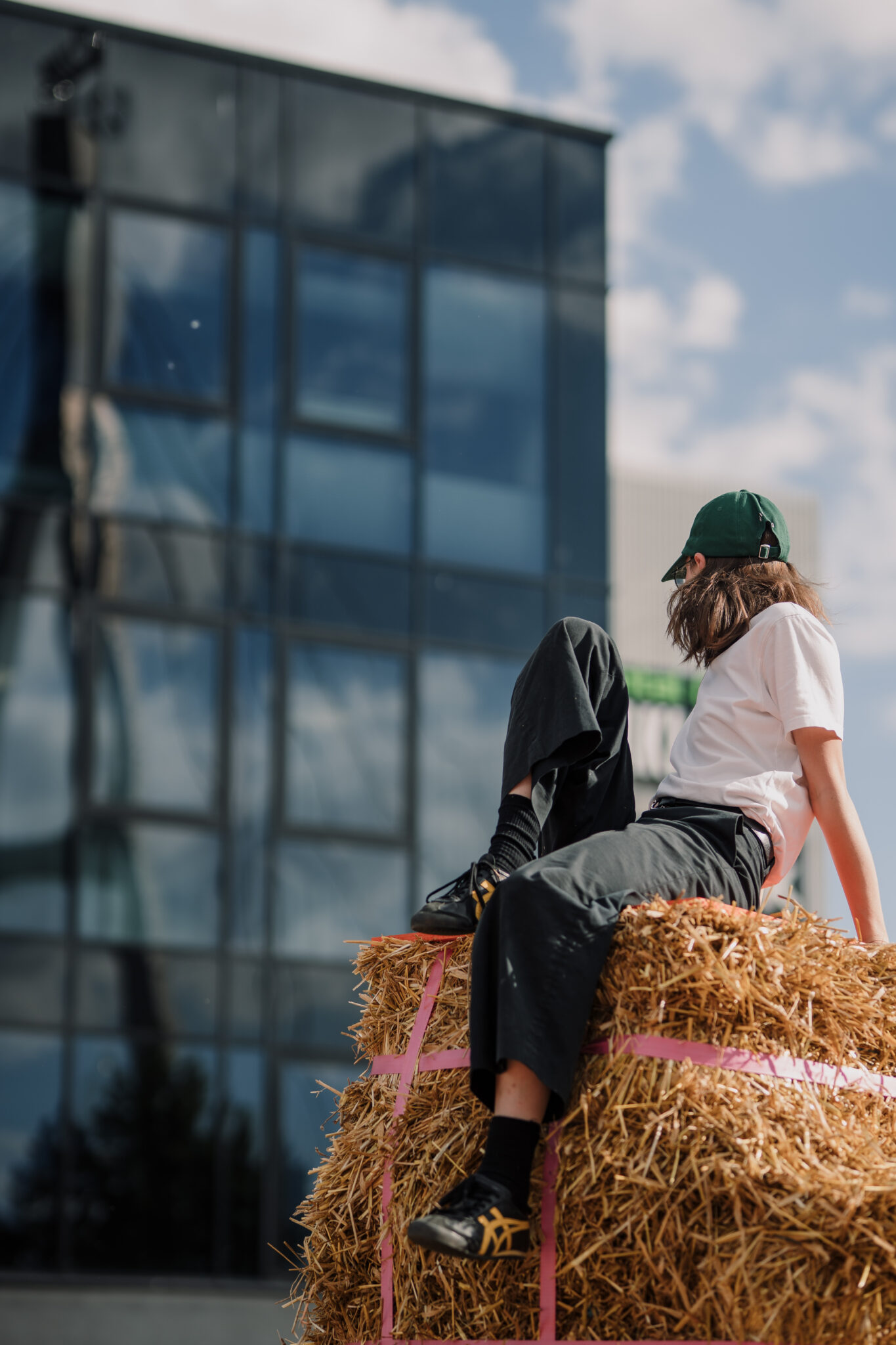 The Floor is lava soft.” intersects the city in the space of a car park – an impermeable slab of of asphalt divided by metal cars with a backdrop of firmly standing buildings. By replacing the typical urban materiality with straw bales, the intervention softens the city landscape, creating a tactile space that is adapted and changed by those using it. This ‘anomaly of softness’ encourages anyone to touch, jump, play, sit, gather or simply just lay around, blurring the borders between the spaces of play and the city itself. Sometimes all it takes is to simply create spaces where play is allowed.