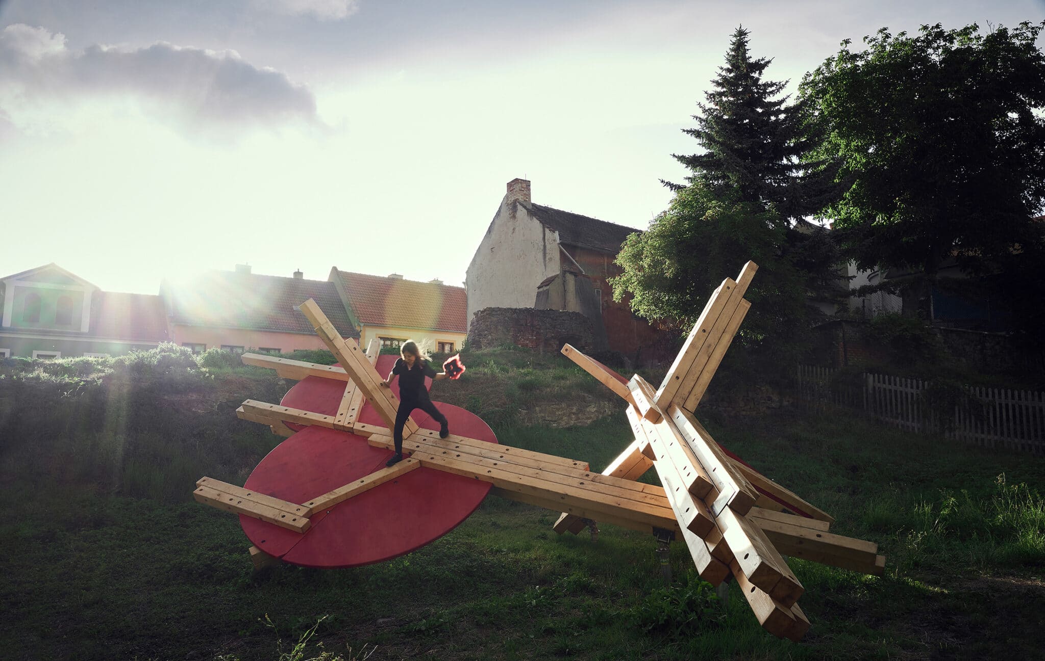 The concept follows the tradition of play sculpture – functional artworks that merge aesthetics with the possibility of play. Thanks to its modular construction, the element can function as a balance beam, a seating and resting structure, or a complex play system – while remaining an original sculptural piece.