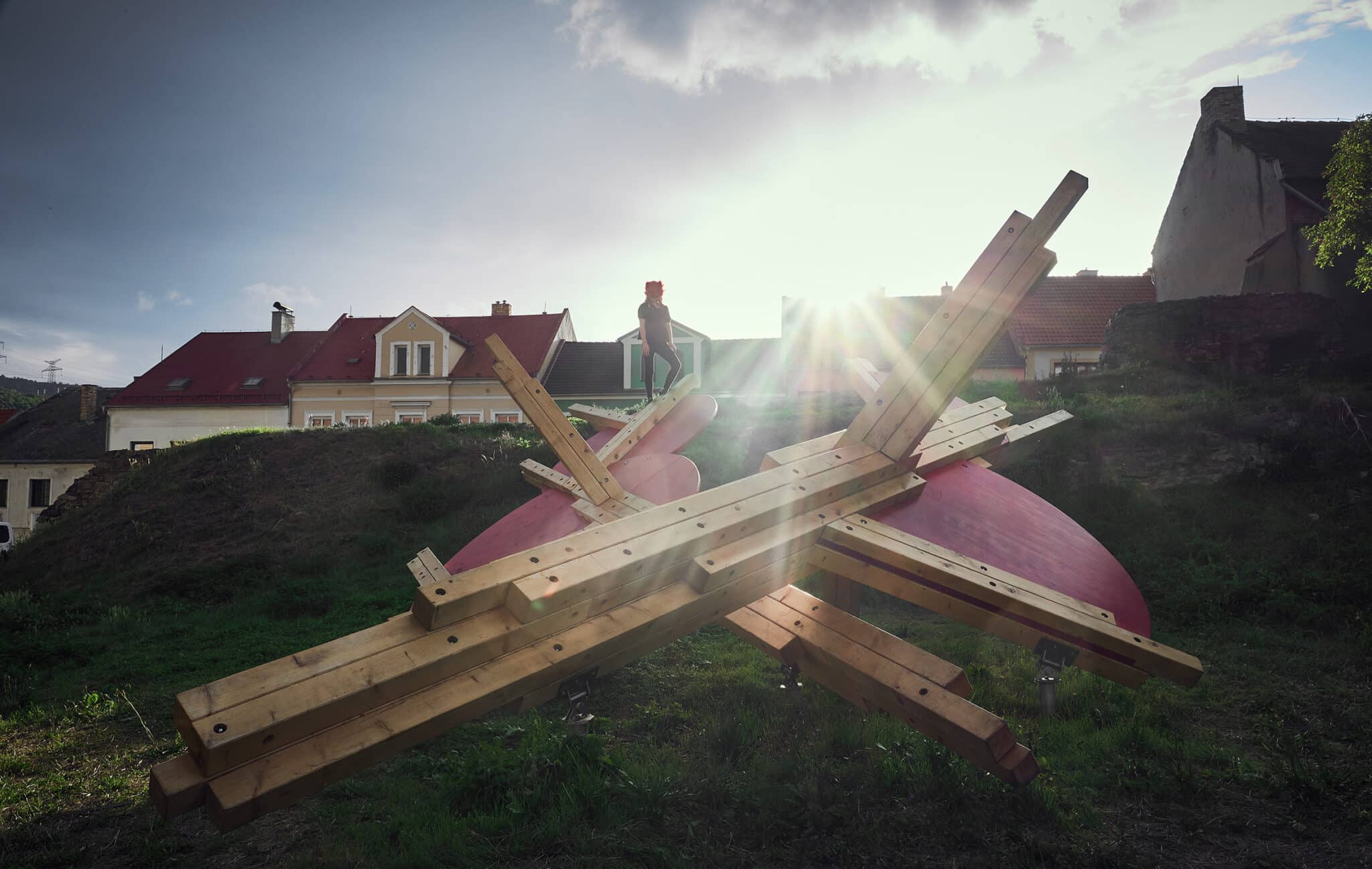 The technical solution focuses on prefabrication, sustainability, and easy installation – the joints are secured with threaded rods, and the structure is anchored using ground screws. All surfaces are treated with natural coatings safe for children. The result is an element that enriches public space both playfully and visually.